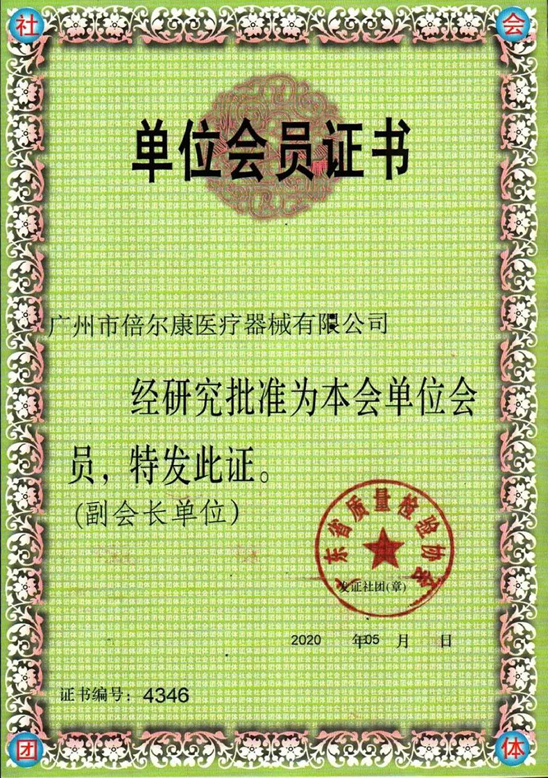 2020年6月,廣東省質量檢驗協會為倍爾康頒發了“廣東省質量檢驗協會副會長單位”證書,這是政府、質量檢驗機構和消費者對倍爾康的產品質量予以的認可。